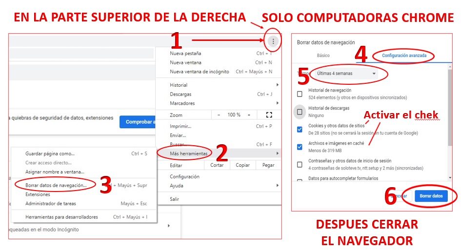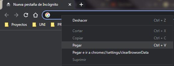 3. En Caso que no funcione la combinacion de teclado copie chrome://settings/clearBrowserData Copiar y pegar en el navegador